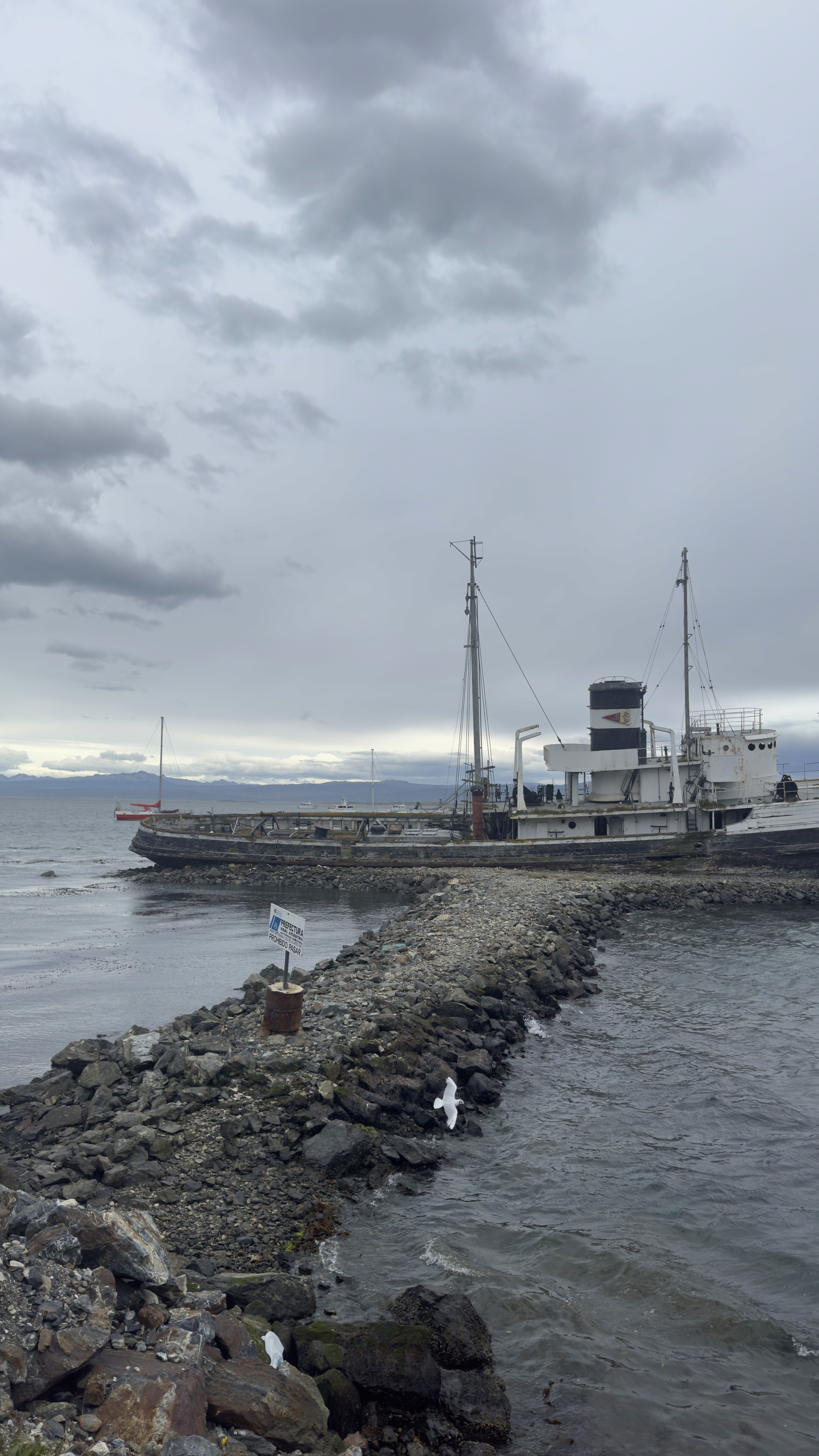 While strolling along the dock and waterfront of Ushuaia, you can admire a shipwreck, and not just any ship! The St Christopher is an American salvage tug that participated in the landing in 1944. In 1947, it was sold to Argentina, and in 1957, it was abandoned and deliberately run aground on the coast due to engine problems and the failure of a towing operation.